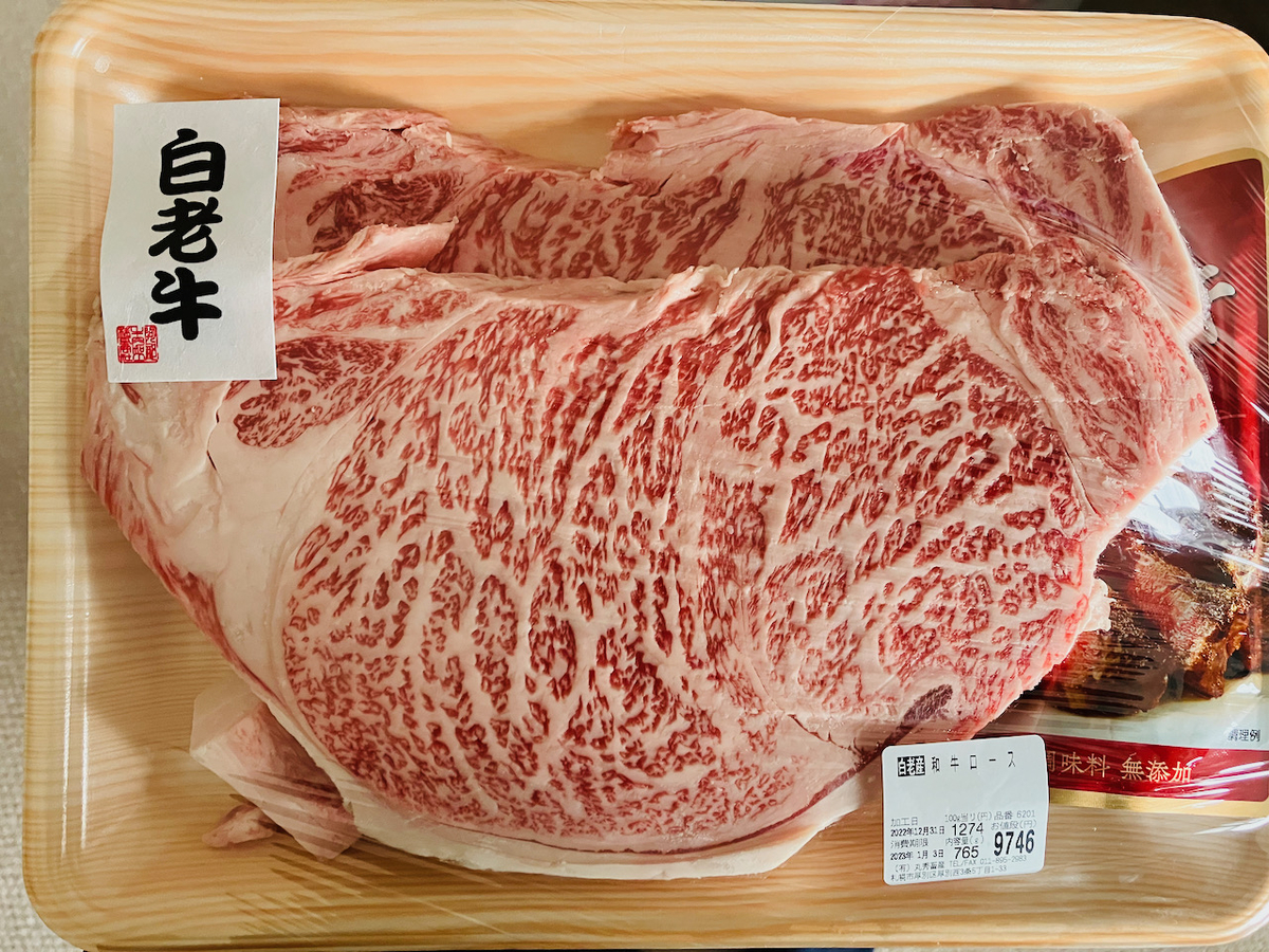 札幌の百貨店なんかで白老牛のステーキ肉なんぞ買おうものなら2500〜3000円/100gくらいは平気でしますねえ。