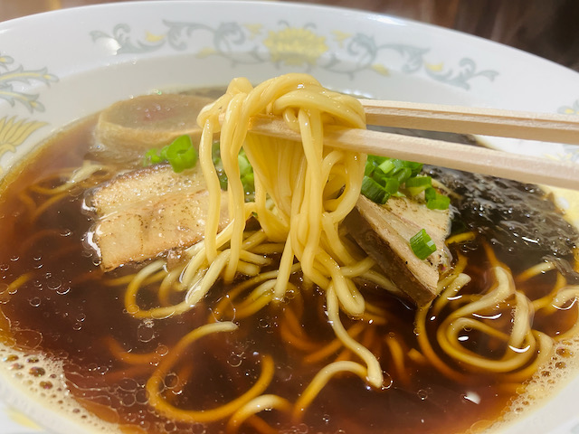なにしろスープはスッキリしており、しかし出汁の風味が効いていますし、コシのある細麺があっさり味のしょうゆといい感じにからんで非常に風味があります。